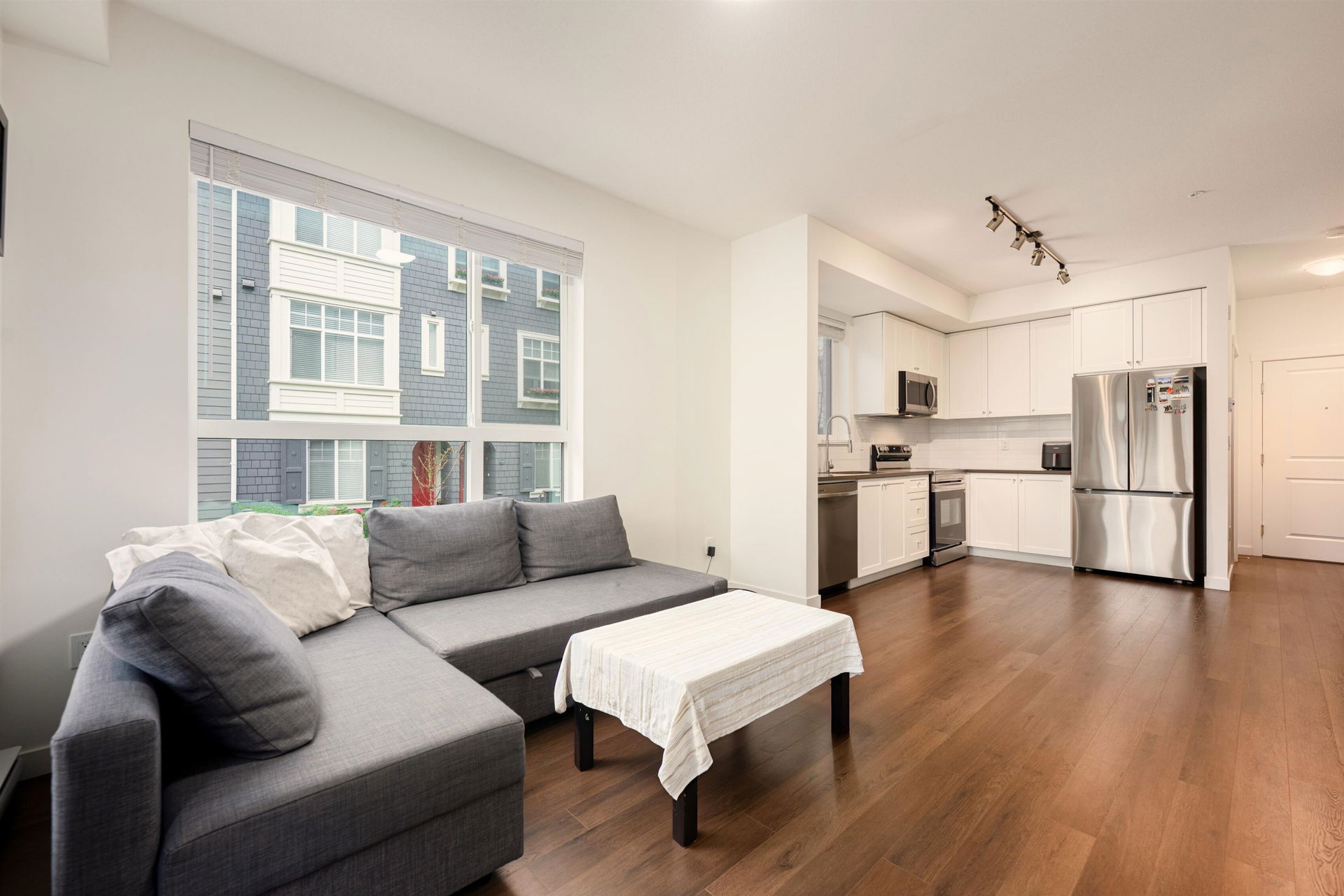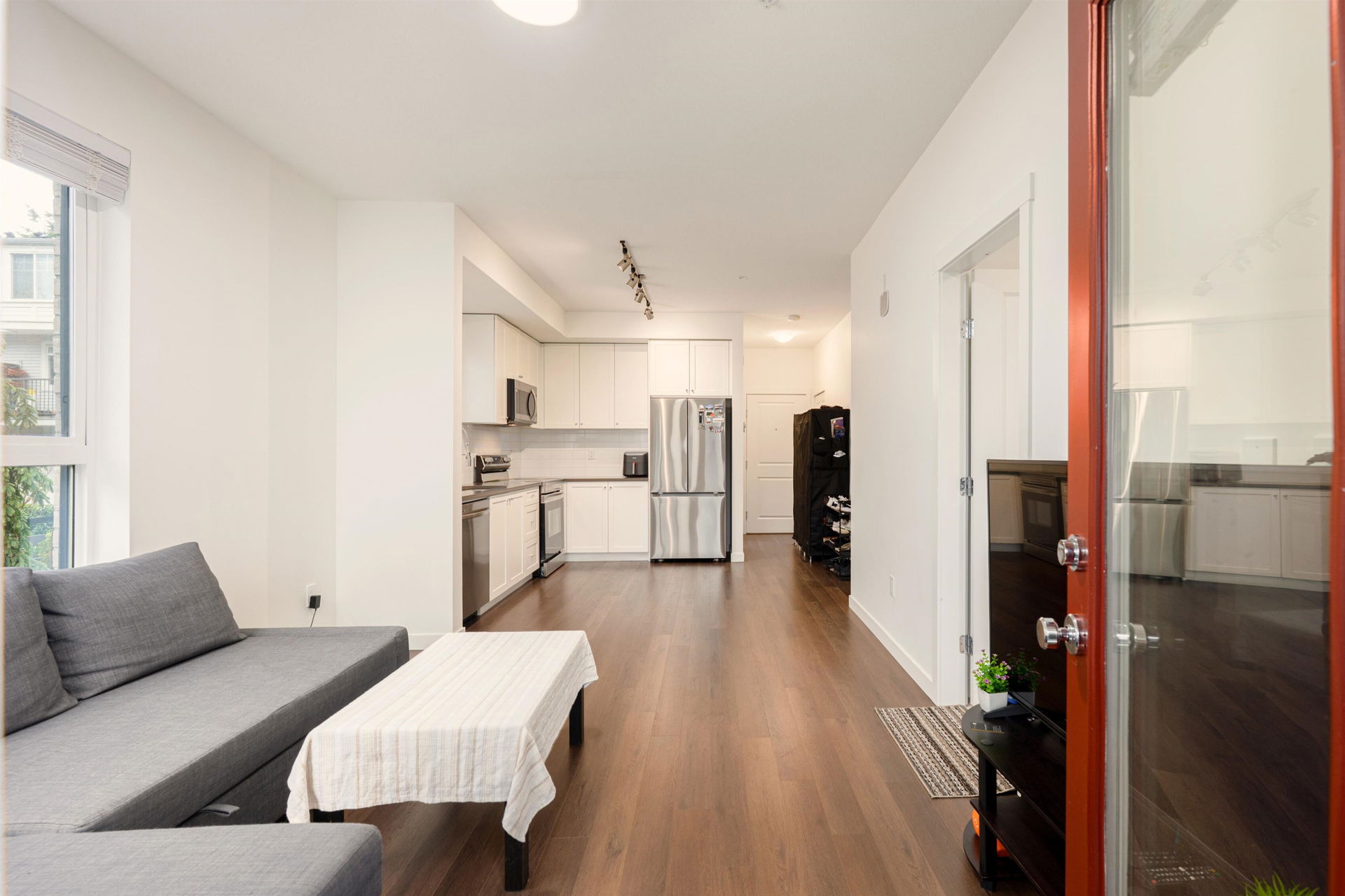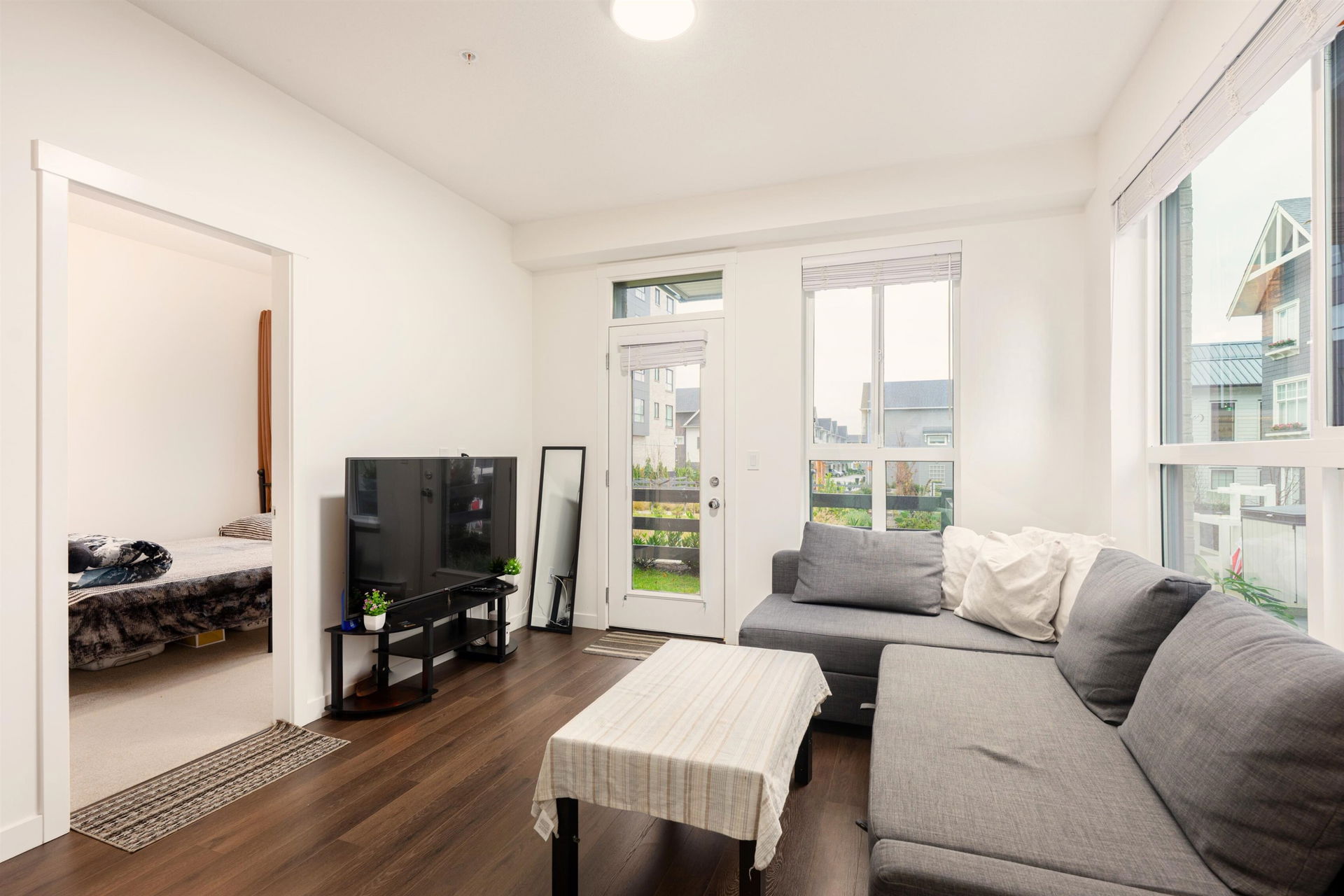 Welcome to this bright and beautifully designed 3-bedroom corner unit offering the rare convenience of ground-level living with direct outdoor access—truly townhouse-style living for the price of a condo. Flooded with natural light from oversized windows, this newer home features an efficient open-concept layout, modern finishes, and seamless indoor-outdoor flow through your walk-out patio. Enjoy the best of both worlds with private exterior entry plus full access through the building, perfect for families, pet owners, or anyone who values ease and accessibility. Located in an exceptional, well-maintained complex, this home is just minutes from schools, shopping, parks, and transit—and within walking distance to the future SkyTrain station. Book your appointment today.